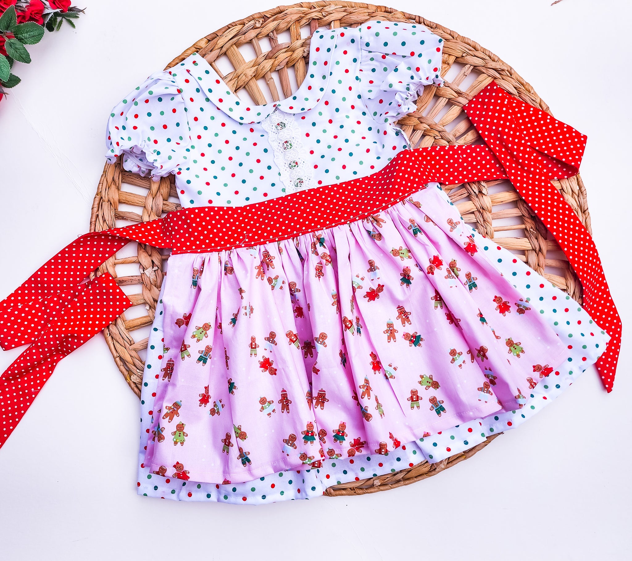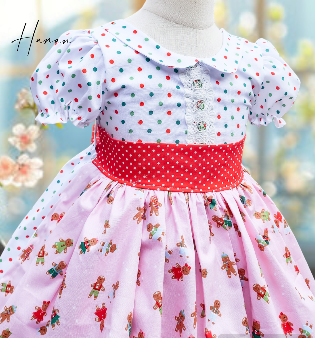 This adorable girl’s Christmas dress features a playful polka dot pattern that perfectly captures the festive spirit. The dress comes with a charming detachable gingerbread apron, adding a touch of holiday whimsy. Puff sleeves give the dress a classic, elegant look, making it ideal for holiday gatherings and photo opportunities. Crafted from comfortable, breathable fabric, this dress ensures your little one stays stylish and cozy throughout the festivities.