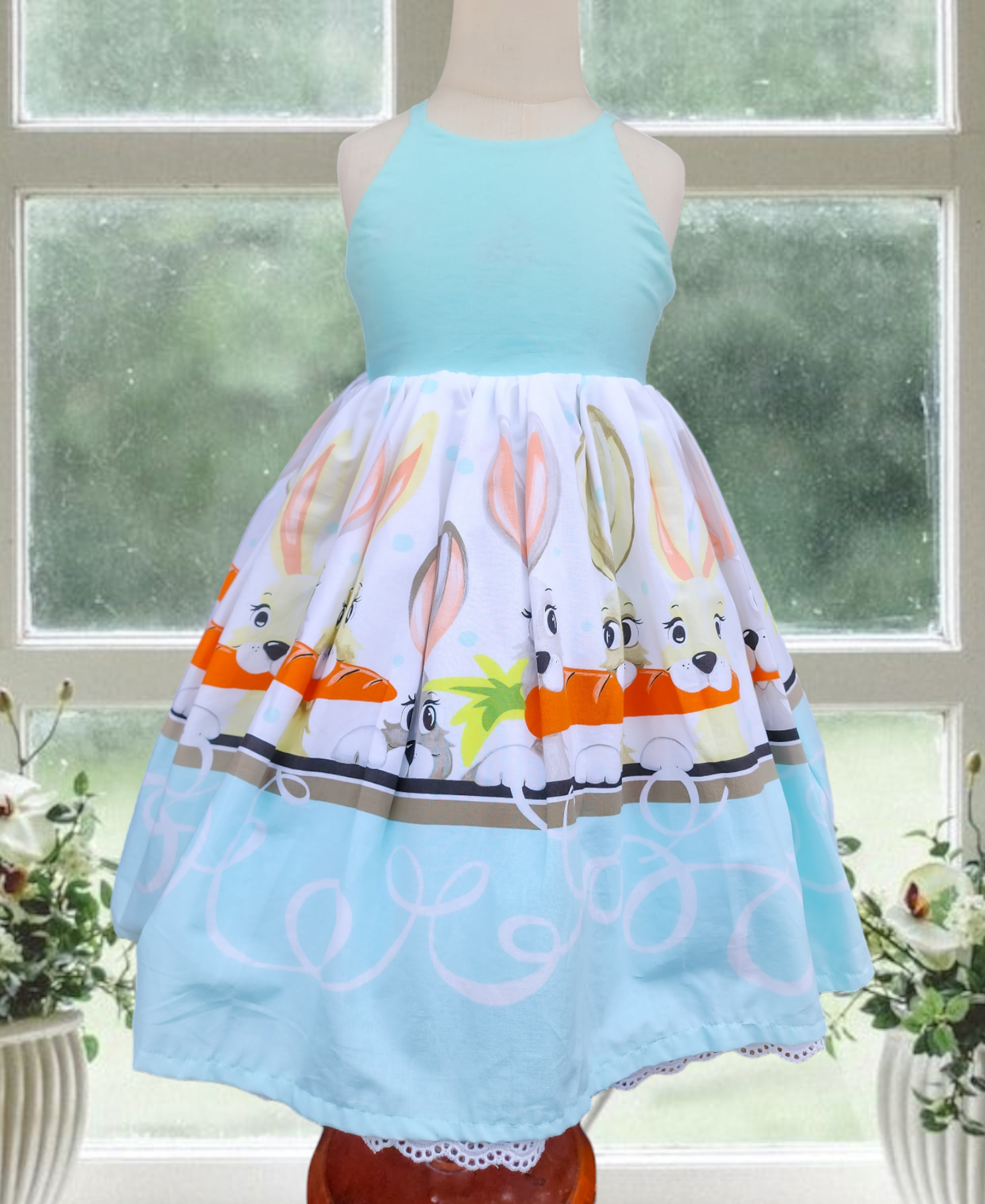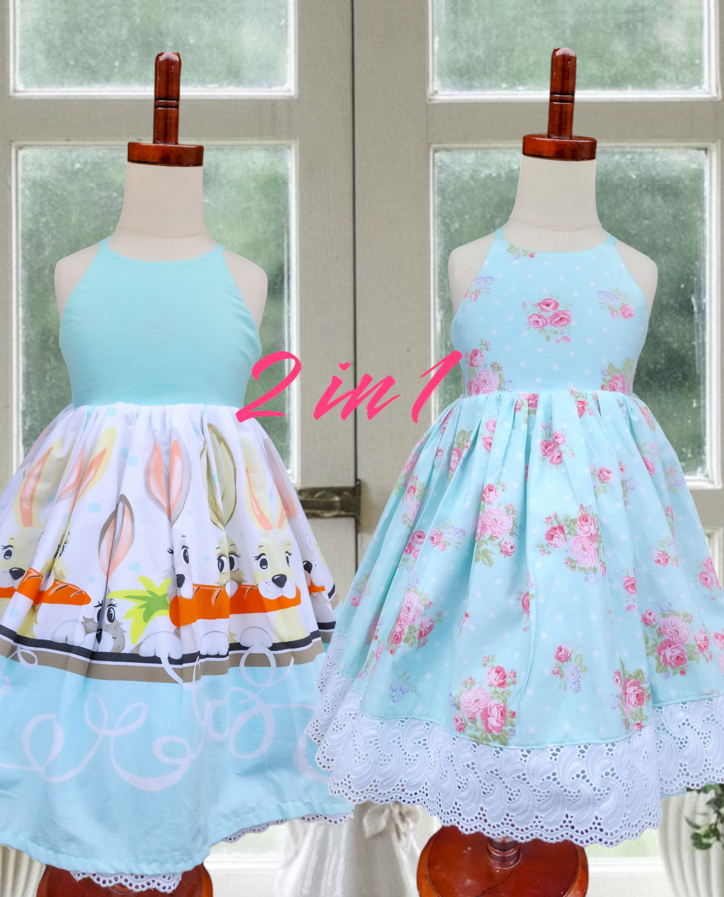 Our 'Spring 2 in One Reversible Girl Dress' is a versatile and practical addition to your child's wardrobe. This dress features a reversible design, allowing you to create two entirely different looks with just one garment! The first side comes in a lovely floral print, perfect for sunny spring days. The reverse side features an adorable bunny print that ie sure to turn heads.